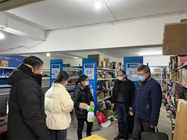 督导检查组一行从学校大门口一路走来,详细了解了学校门岗“两查一测”工作落实情况、学校疫情防控物资储备情况、学校食堂安全管理情况、学校快递投放点(菜鸟驿站)消杀及日常管理情况等。