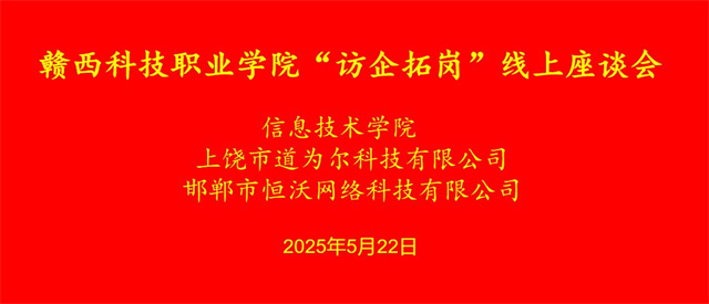 为深入贯彻落实教育部、省教育厅关于2025届毕业生就业工作的决策部署,积极响应学校促就业工作安排,全力打好毕业生就业工作攻坚战。近日,信息技术学院创新工作模式,主动对接企业需求,开展“云端”访企拓岗专项行动。通过云端对接、远程洽谈等数字化手段,精准挖掘优质岗位资源,深化校企合作内涵,拓宽就业渠道,全力助推2025届毕业生实现更充分、更高质量就业。