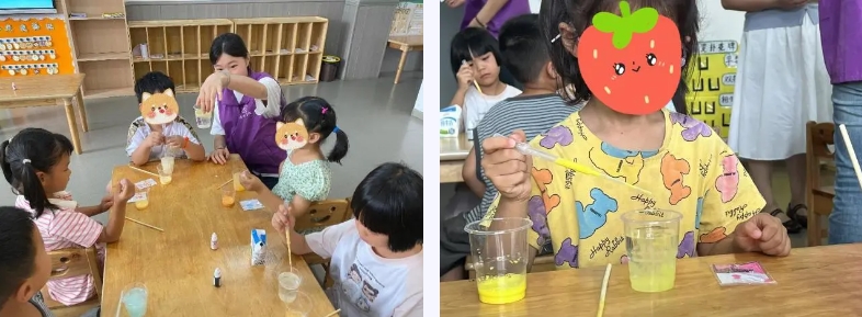 点燃科学火花:趣味实验探奥秘 在筑牢安全防线的基础上,队员们又马不停蹄地为孩子们带来了一场奇妙的“科学魔法秀”。他们精心准备了两个简单有趣的小实验——“消失的小红花”和“牛奶烟花”。在“消失的小红花”实验中,队员们引导孩子们观察涂有特殊颜料的小花在水中的“消失”现象,深入浅出地揭秘了光的折射原理;而在“牛奶烟花”实验中,当滴入颜料和洗洁精的牛奶瞬间绽放出绚丽的色彩漩涡时,孩子们瞪大了好奇的眼睛,发出阵阵惊叹,争先恐后地举手想要亲自动手尝试。小小的实验,不仅为孩子们带来了视觉的震撼,更在他们幼小的心灵中悄然播下了热爱科学、探索未知的种子。