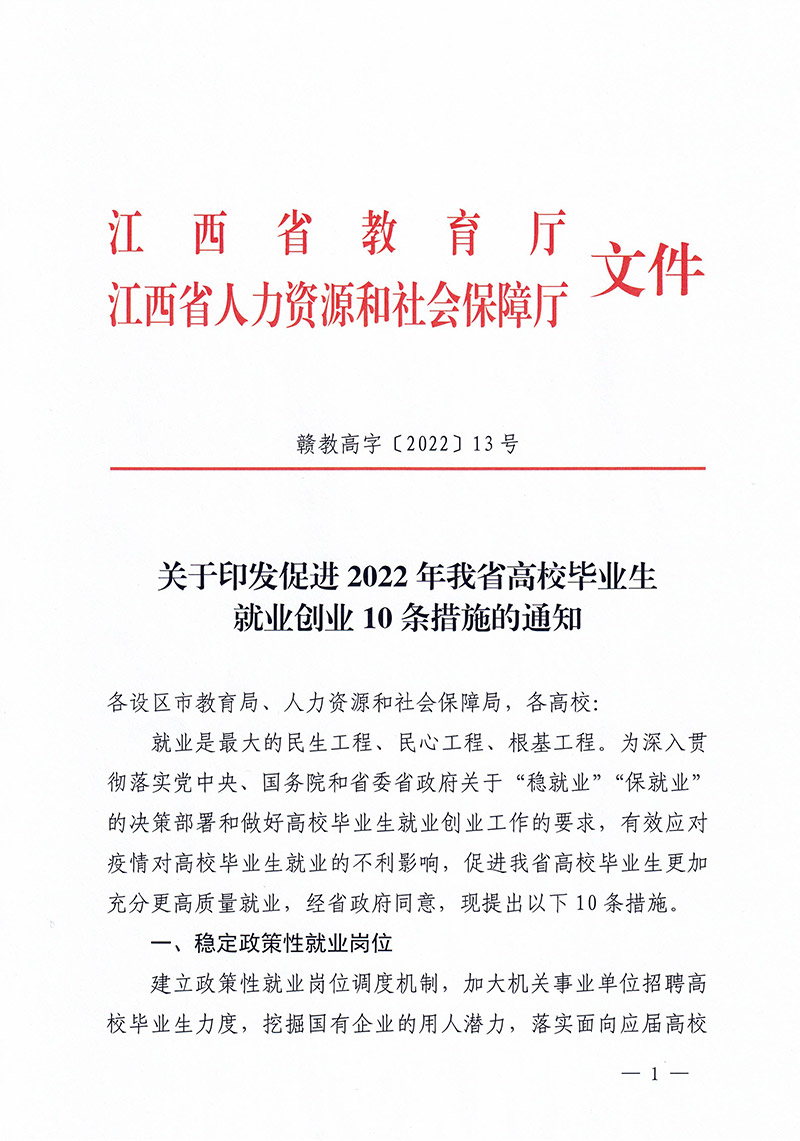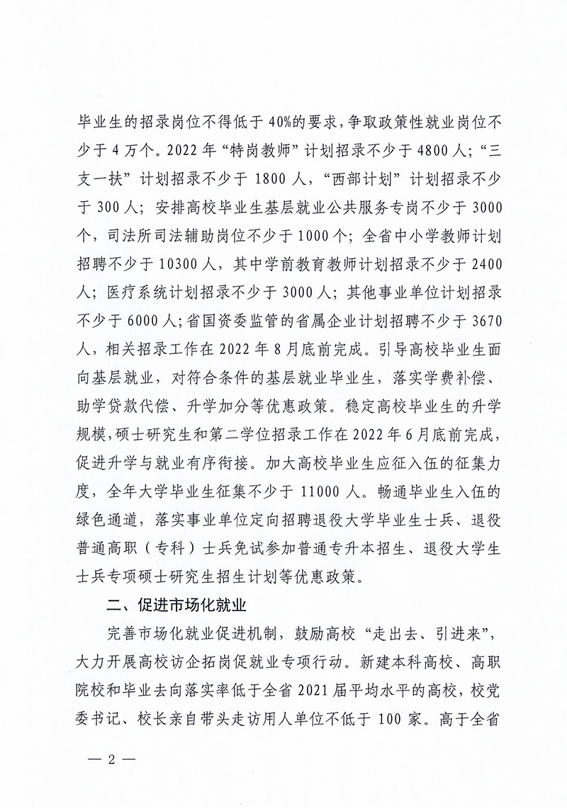 关于印发促进2022年我省高校毕业生就业创业10条措施的通知