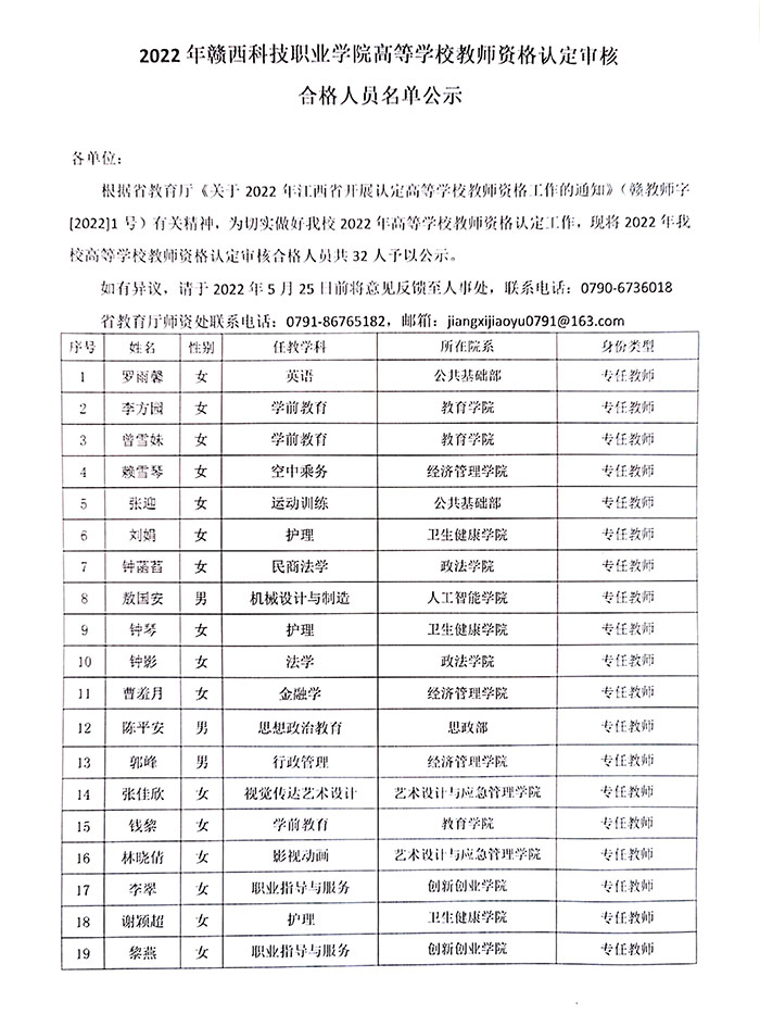 高校教师资格证公示