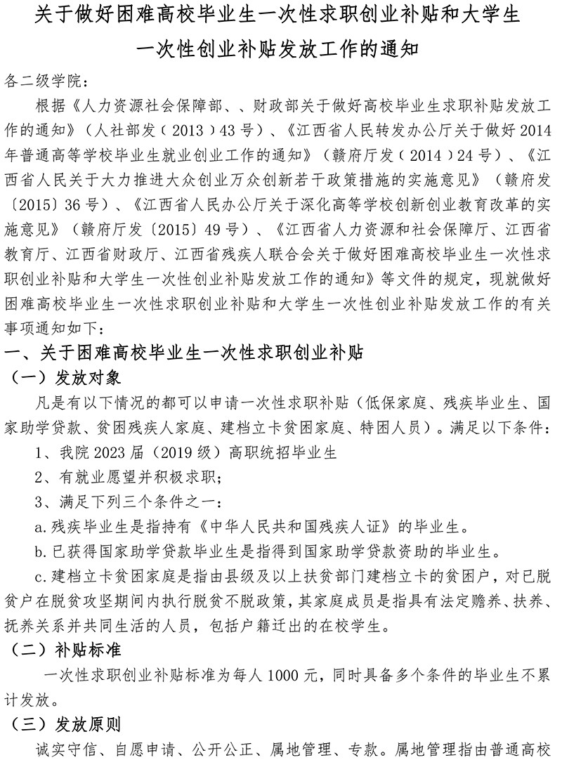 关于做好困难高校毕业生一次性求职创业补贴和大学生一次性创业补贴发放工作的通知