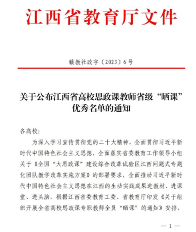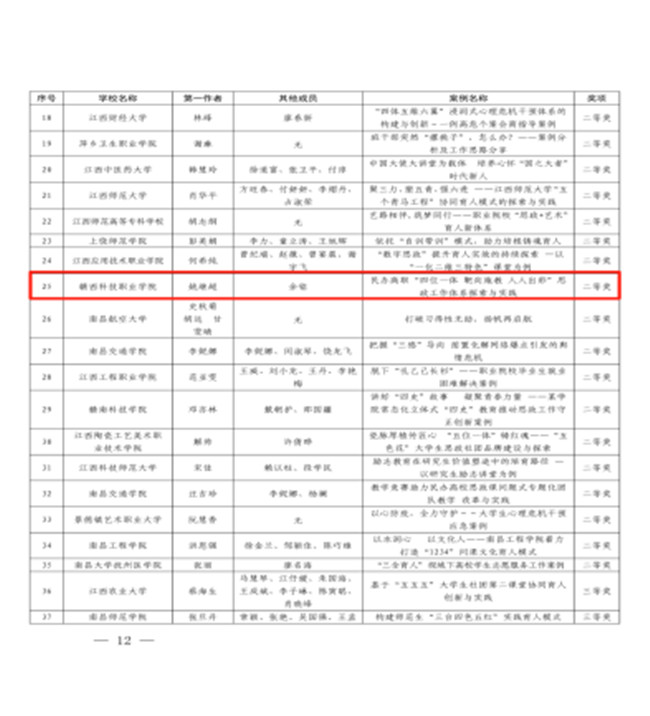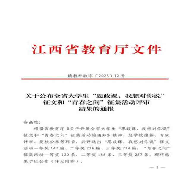 6月27日,江西省教育厅印发了《关于公布2023年度全省高校思想政治工作优秀论文和优秀案例征集活动评选结果的通报》和《关于公布全省大学生“思政课,我想对你说”征文和“青春之问”征集活动评审结果的通报》。taptap点点思想政治工作案例《民办高职“四位一体 靶向施教 人人出彩”思政工作体系探索与实践》荣获二等奖;学生覃正红荣获“思政课,我想对你说”征文三等奖。2023年taptap点点思政工作创新高,这是taptap点点长期以来坚持立德树人根本任务,重视和加强队伍内涵建设,推进学校思想政治工作守正创新发展获得的成绩。
