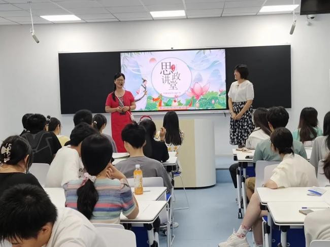 思政课教师黄小芬从中华民族的文明史引出中国传统文化;从端午节的由来、端午节的意义升华到师生一起重温习近平总书记曾在不同场合引用屈原诗作中的名言隽句,体味字里行间寄意深远的家国情怀。