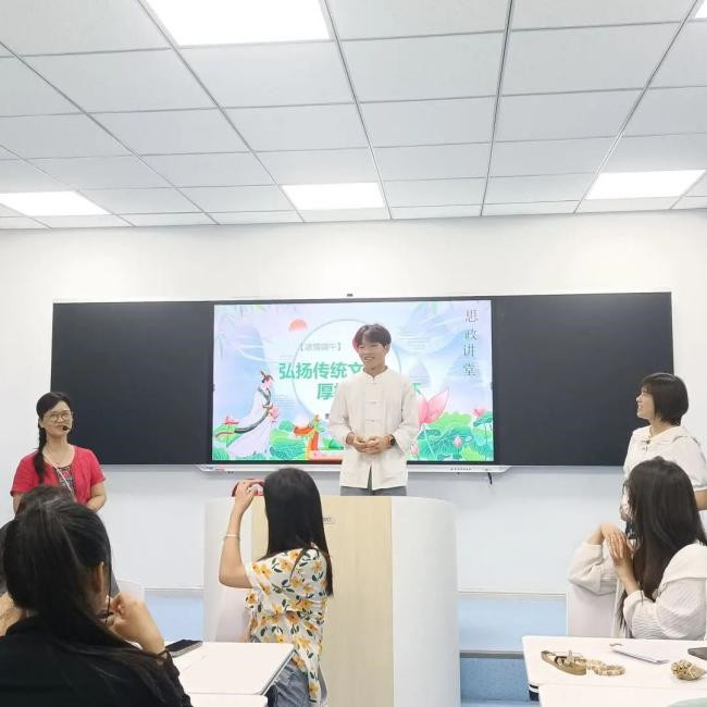 6月14日下午在学校3号教学楼410智慧教室,一堂别开生面的以“【浓情端午】弘扬传统文化 厚植家国情怀”为主题的“一课多师”“双师同堂”“师生同台”的思政课在思政部主任黄小芬教师与心理课教师季玲杯联袂主讲下如火如荼进行。