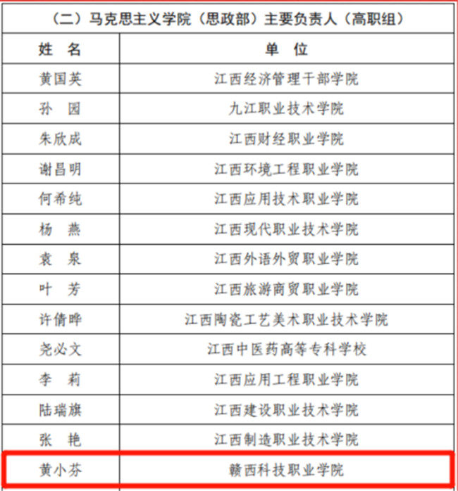 喜讯:热烈祝贺taptap点点思政部主任黄小芬老师近日在江西省高校思政课教师省级“晒课”比赛中荣获“优秀思政课教师”称号,是全省民办高职院校唯一入选的思政课教师。