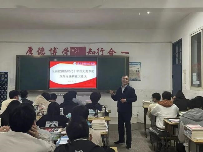 “双师同堂”共上一堂思政课,打破了一个教师讲授整堂课的传统教学模式,充分挖掘校内各方资源,让课堂源于教材又超越教材,同时又丰富了学生的学识,让他们在伟人的实践中深刻感悟伟人的思想魅力,从而更好的将知识入脑入心,同学们纷纷表示,双师同堂授课方式十分新颖,既相互配合又互为补充,让思政课更接地气,思政课也因此变得更加丰富充实、富有意义。