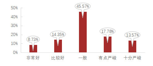 毕业生对未来5年内本专业就业市场前景持认可态度的比例为68.65%,其中认为所学专业未来发展“非常好”的占比为8.73%,“比较好”的占比14.35%,“一般”的占比为45.57%。超过四成的毕业生反馈目前工作岗位与所学专业不相关,毕业生工作与专业相关程度亟待提升。如何进一步提升专业设置与社会实际需求的对接度,帮助毕业生步入社会后更好发挥专业所长,是高校亟需解决的问题。如图所示。