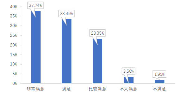调查数据显示,用人单位对学校毕业生的综合满意度为94.55%,其中“非常满意”占比37.74%,“满意”占比33.46%,“比较满意”占比23.35%。说明学校培养的专业人才与社会市场需求高度契合,在工作中的表现良好,得到了用人单位的充分认可。