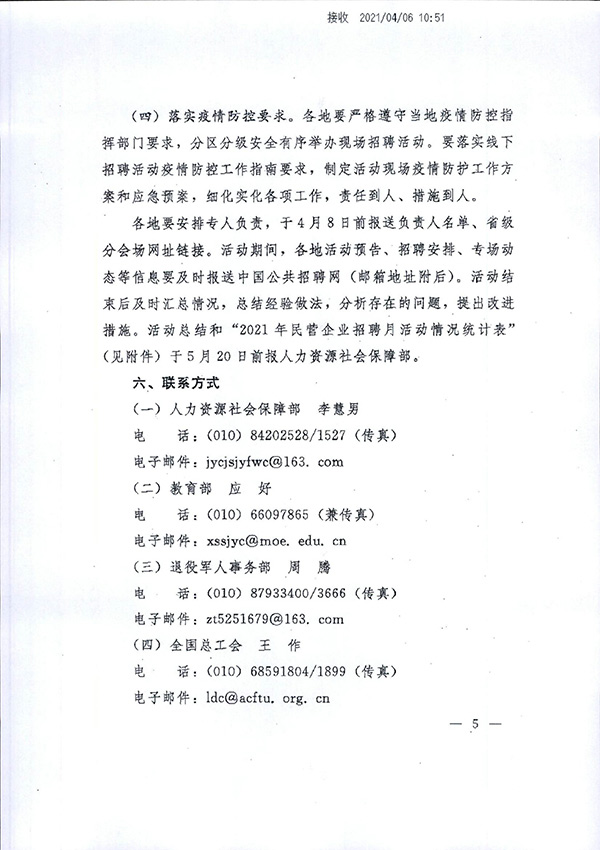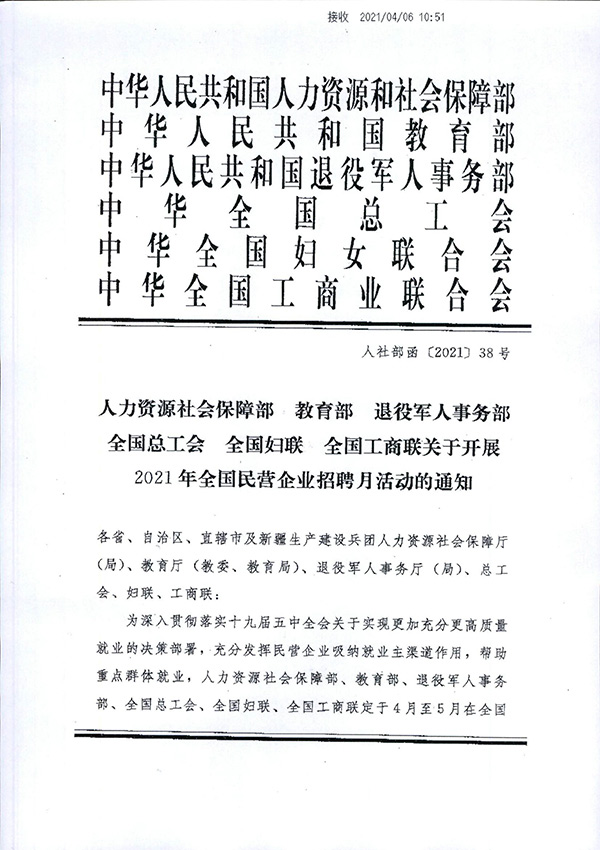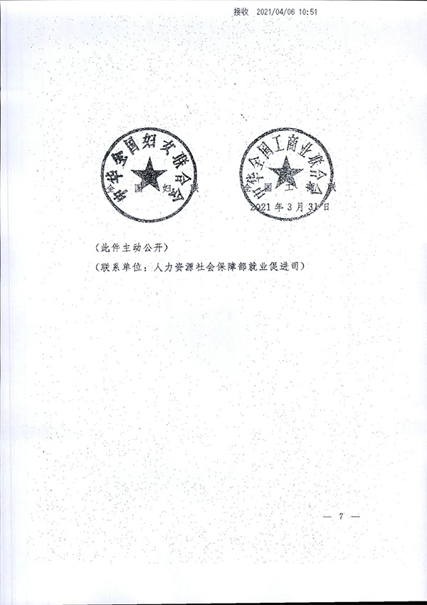 人力资源社会保障部退役军人事务部 全国总工会 全国妇联 全国工商联关于开展2021年全国民