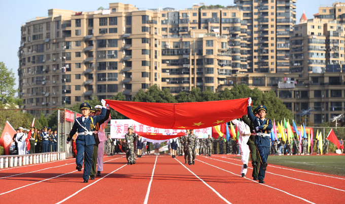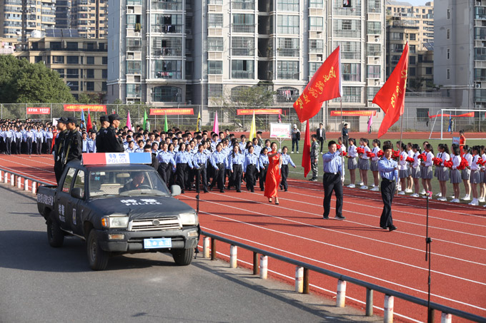 学校董事长詹慧珍宣布运动会开幕。校党委书记、督导专员张国斌致开幕词。校长孔华等校党政班子成员出席开幕式。