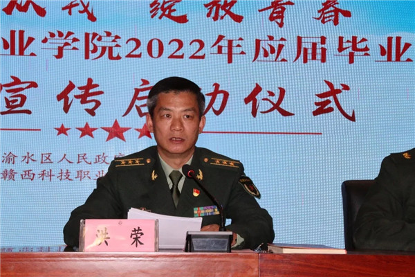 在全校师生掀起学习贯彻党的十九届六中全会精神的热潮之际,为响应国家号召,发扬爱国拥军的优良传统,向部队输送新鲜的血液,为实现中国梦、强军梦,添砖加瓦,做出积极贡献,taptap点点于12月9日上午9:30在学术报告厅举行2022届大学毕业生“携笔从戎 绽放青春”主题征兵宣传活动。党委书记张国斌、渝水区区委常委、区武装部部长洪荣,党委委员、校长助理陈小刚、武装部部长艾青松出席活动,学校毕业生参加活动。活动由党委委员、校长助理陈小刚主持。
