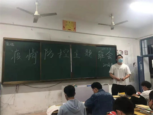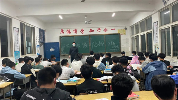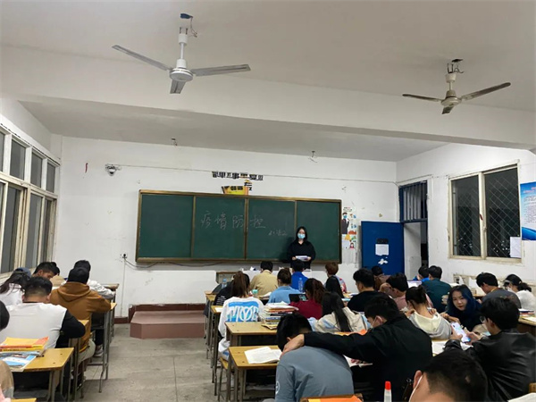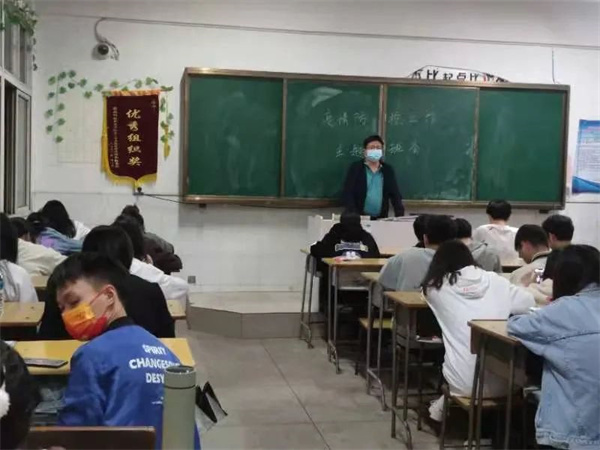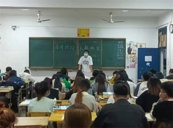 在班会中,辅导员告诫同学们关于预防新冠肺炎疫情的重要性和迫切性,深入解读学校最新疫情防控的文件和精神,远离可能的传染源,无特殊情况不要前往中高风险地区,提醒同学们要戴好口罩,做好个人防护,不聚众,不扎堆,尽量减少到人员密集的地方或场所。