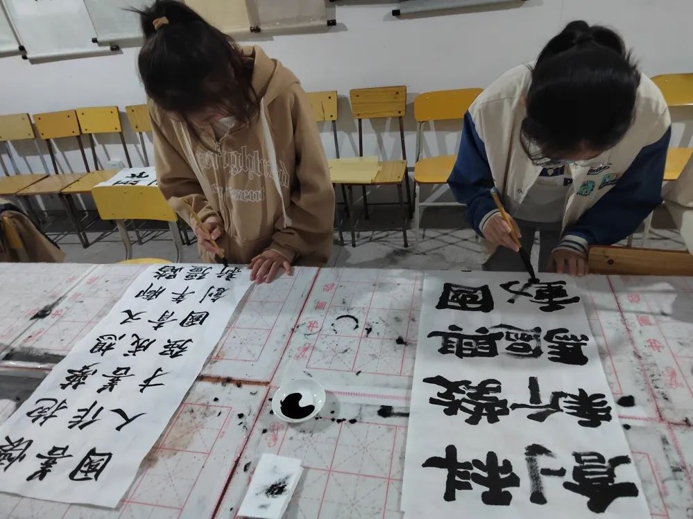 连日来,学校团委组织党的二十大精神进社团活动在青年学生中引起热烈反响。学校勃林书法协会的学生们挥毫泼墨,用书写党的二十大报告金句的形式学习党的二十大精神。