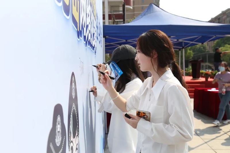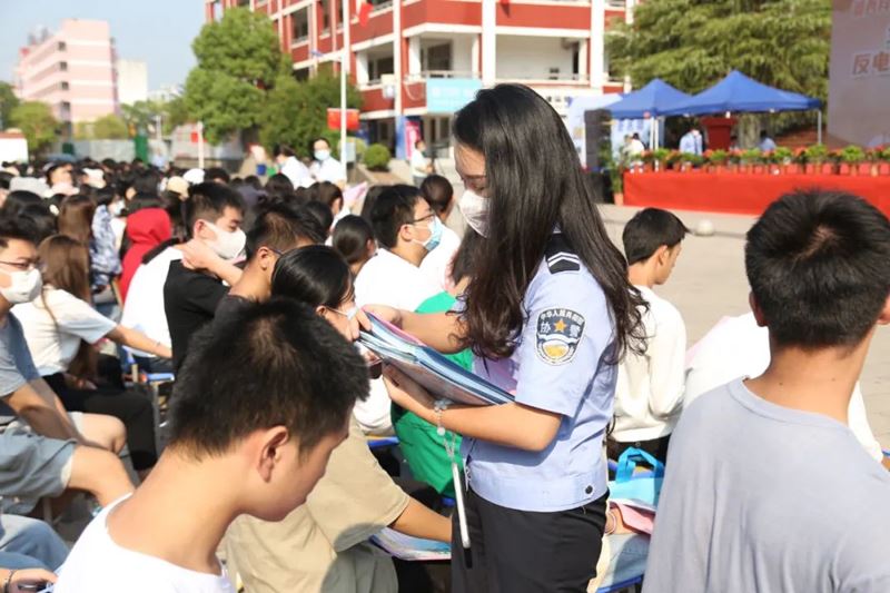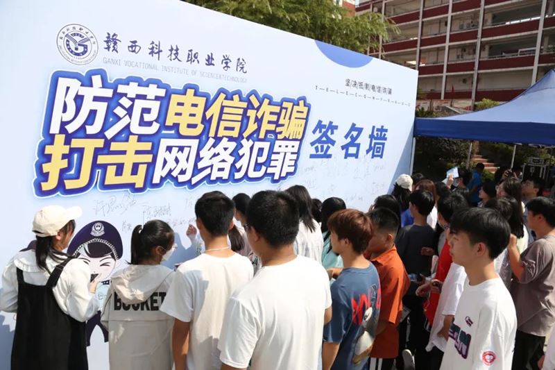 期间,工作人员现场发放了防范电信网络诈骗等法治宣传资料,并组织开展了学生防电信网络诈骗签名活动。