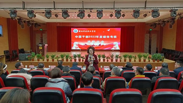 为全面回顾和总结过去一年的各项工作,进一步提升干部队伍凝聚力和履职能力,推动2023年各项工作再上新台阶,2月13日,学校召开2022年度中层干部述职大会。董事长詹慧珍、党委书记张国斌、校长孔华等学校领导班子成员以及全体中层干部和教职工参会,会议由党委副书记姚继超主持。