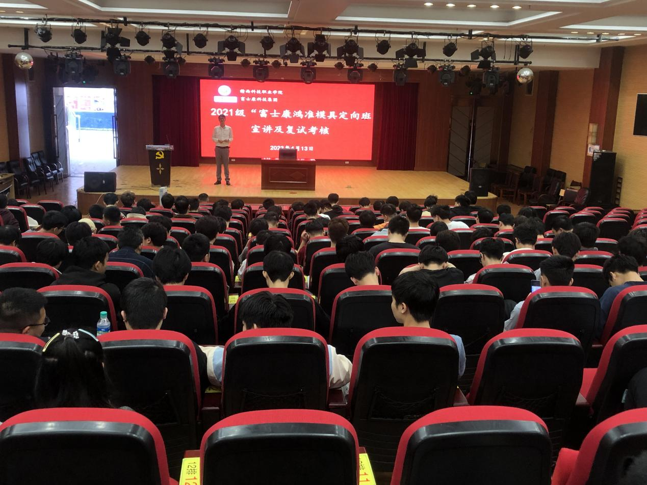 4月13日下午,富士康科技集团龙华人资主管张国发一行三人前来taptap点点进行2023届毕业生招聘和2021级“富士康鸿准模具定向班”宣讲考核。