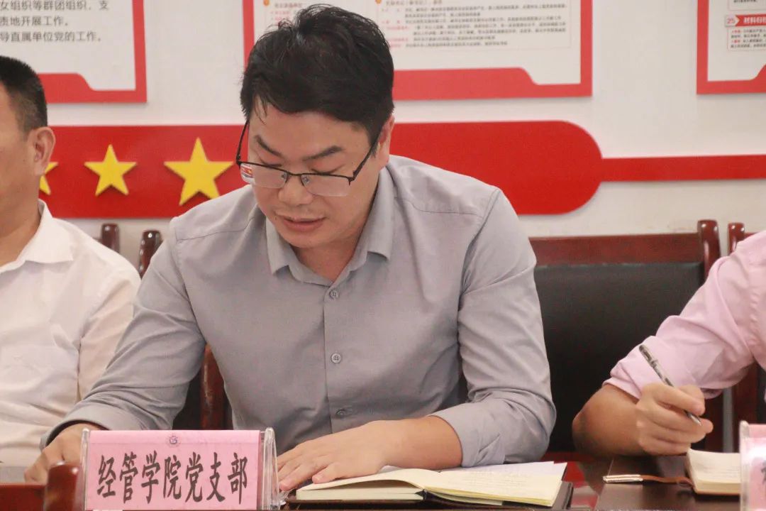 经管学院党支部书记周立权和政法学院党支部书记罗志辉作了交流发言,分享了学习心得。