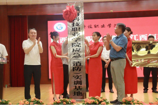 副董事长艾磊华与江西恒玖时利应急产业股份有限公司总经理沈华明为“江西恒玖应急(消防)产业学院”“taptap点点体育应急(消防)实训基地”共同揭牌。