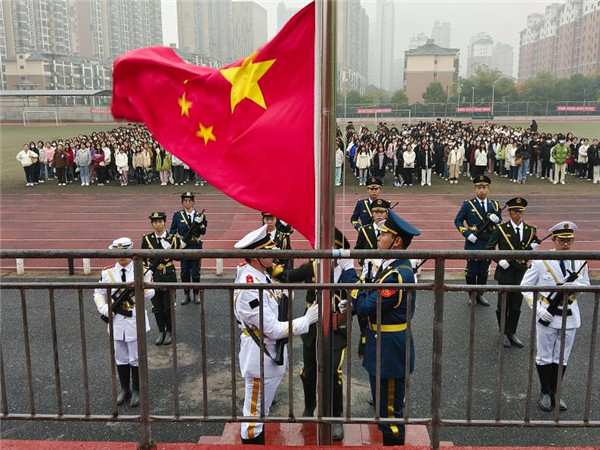 升旗仪式后,学生代表张超凡同学进行国旗下讲话:“爱国不仅仅是口头上的表达,更是一种坚定的信念和行动。我们要时刻铭记历史,不忘初心,牢记使命,将爱国之情融入我们的血脉之中。在人生最宝贵的时期,吾辈青年更应立鸿鹄之志,忆先辈事迹,学先辈精神,把理想植根祖国大地,植根人民利益;在这个伟大的时代,我们应该珍惜机遇,勇往直前。让我们一起肩负起振兴中华、实现民族复兴的伟大使命,用我们的青春和热血书写属于我们的壮丽篇章!”