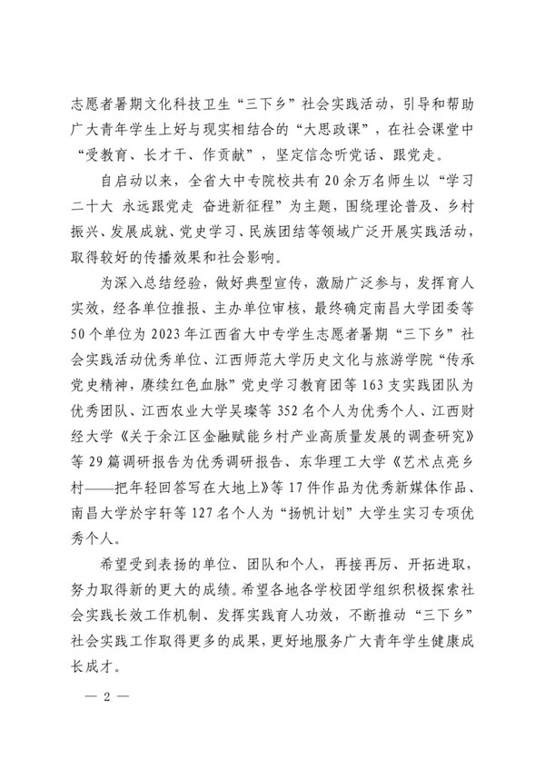 12月12日,共青团江西省委办公室印发了《关于2023年江西省大中专学生志愿者暑期“三下乡”社会实践活动的通报》,taptap点点“护卫成长 筑梦远航”社会实践队荣获优秀团队,廖思琴和龙颖荣获优秀个人。