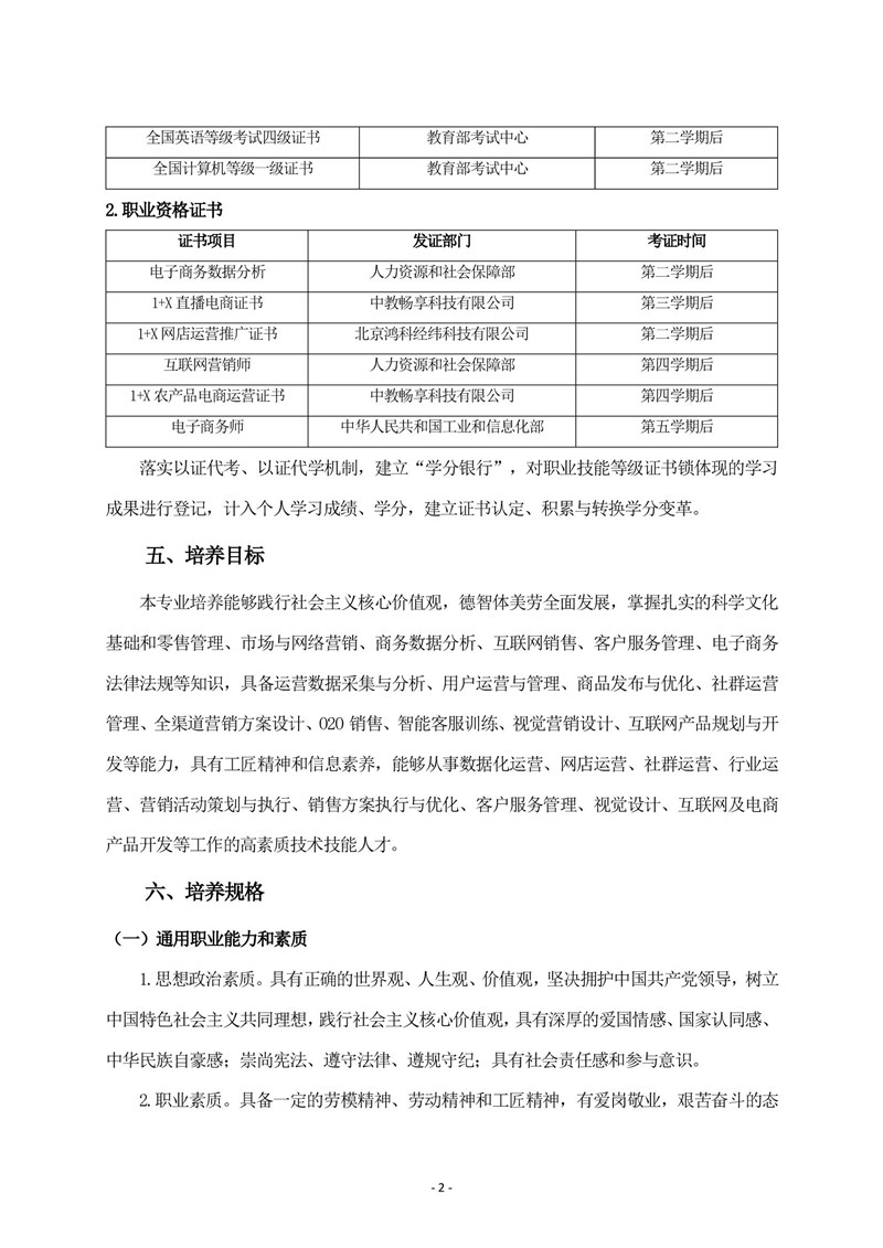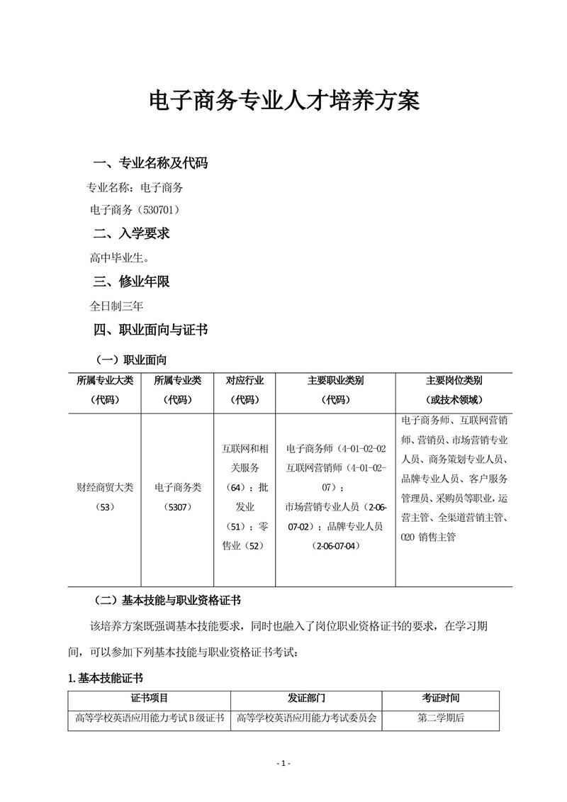 电子商务专业人才培养方案