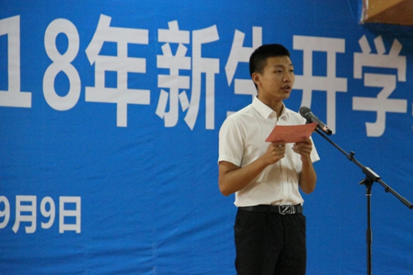 贝博学生会主席赵代豪代表高年级学生发言,鼓励新生们积极参与校园活动、敢于尝试,同时祝愿新生们拥有美满的大学生活。贝博2018级数学与应用数学(师范)一班的陈晓椰作为新生代表上台发言,以“众人皆醉我独醒”为主题,发表了自己对大学生活的追求与期望,并祝愿每一位同学在这新的起点都有新的收获。