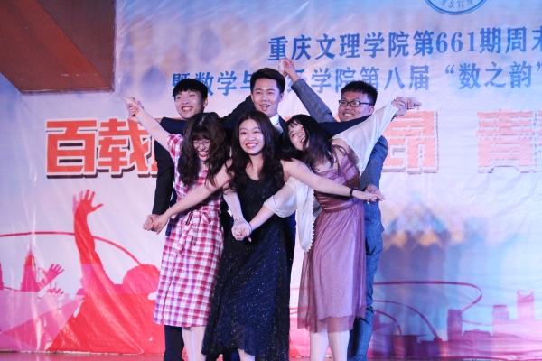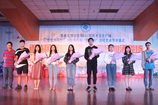 2019年5月11日晚19:00,贝博在红河A区活动中心三楼举办了重庆文理学院第661期周末文化广场暨数学与财经学院第八届“数之韵”数学文化艺术节晚会。本次晚会的主题为“百载风云情激昂,青春热血洒疆场”,以此纪念五四运动100周年。莅临本次晚会的有贝博党总支书记余大鹏、金融与统计系主任杨树成、数学与应用数学系主任付天贵、实验实训中心副主任罗章涛、团总支副书记杨欢、学生第一支部书记王海萍以及辅导员邹佳桃、唐平。各学院学生组织主席团成员、文艺活动部成员和贝博2018级全体同学以及2017级部分同学到场观看。