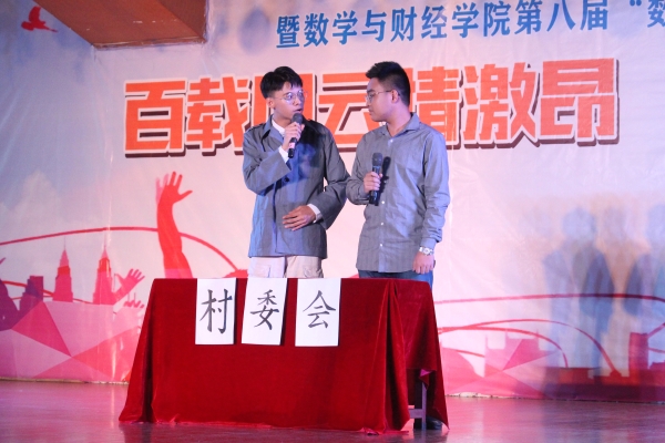 晚会开始,配合默契的6to1乐队以一首激情澎湃的《Fight to peace》点燃了现场。随后,余大鹏为在国家级、省部级、校级的各项学科竞赛、体育赛事中获奖的部分团队代表进行颁奖,并合影留念。紧接着,各项精彩的节目将晚会带入更加热烈的氛围,相声《竞选村长》以幽默风趣的方式讲述如何做好新时代的好干部,街舞《自作多情》、小品《赌王争霸赛》、朗诵《祖国颂》、舞台剧《红色的记忆》皆展现了新时代新青年的朝气蓬勃,他们精彩的表演为观众诠释了他们的青春活力。精彩的歌曲串烧《初心》更是将现场气氛带向高潮,赢得在场观众的热烈掌声。一支柔美的古典舞《风华录》为大家展现了中华五千年文化的源远流长。晚会期间穿插了多次抽奖环节,不少幸运儿获得大奖。最后,数学与财经学院院级学生组织的各位部长和主席团成员带来走秀《摩登时代》,点燃全场氛围,幽默风趣的各位部长让在场观众笑声不断,最后在大家的呼喊声和掌声中本次晚会落下帷幕。