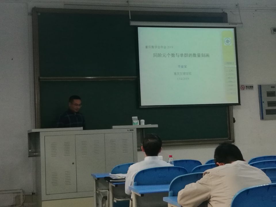 李金宝博士和李明华博士分别做了题为《同阶元个数与单群的数量刻画》和《次微分在变分分析中的作用》的分组报告。通过参加此次年会,加强了学院与重庆市数学领域同行们的学术交流,参会老师进一步的了解了重庆市数学领域的最新研究动态,为今后的学术研究提供了努力方向。