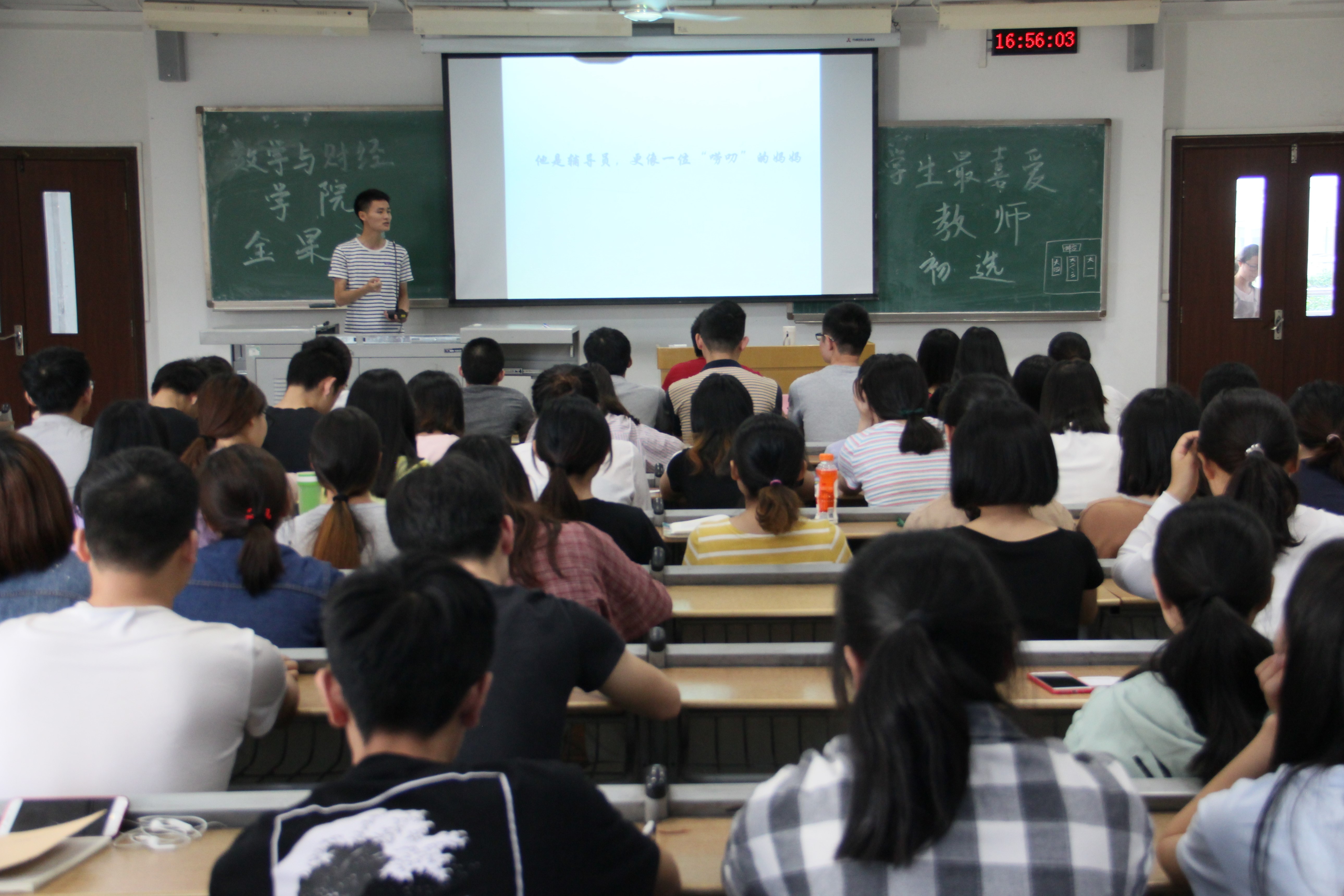 前期在我院辅导员助理和班委的组织下,各班级推荐出优秀教师,后各年级分别从这些优秀教师中推选出教师候选人,得票数最高的四位教师进入了贝博该次评选活动。活动过程中四位同学以展示PPT的形式再次推荐了入选的教师,他们从各个教师过硬的专业素质、良好的精神风貌以及为什么受学生喜爱等多个方面向大家阐述了同学推荐他们的理由,引起了在场同学的强烈共鸣。经过在场评选人的投票后,付天贵老师当选为贝博学生最喜爱的教师。