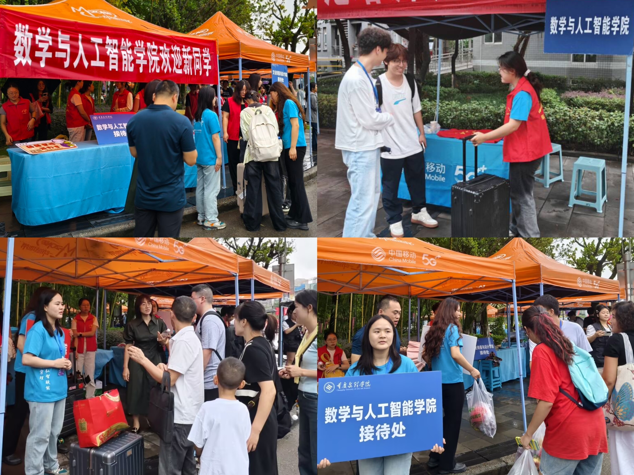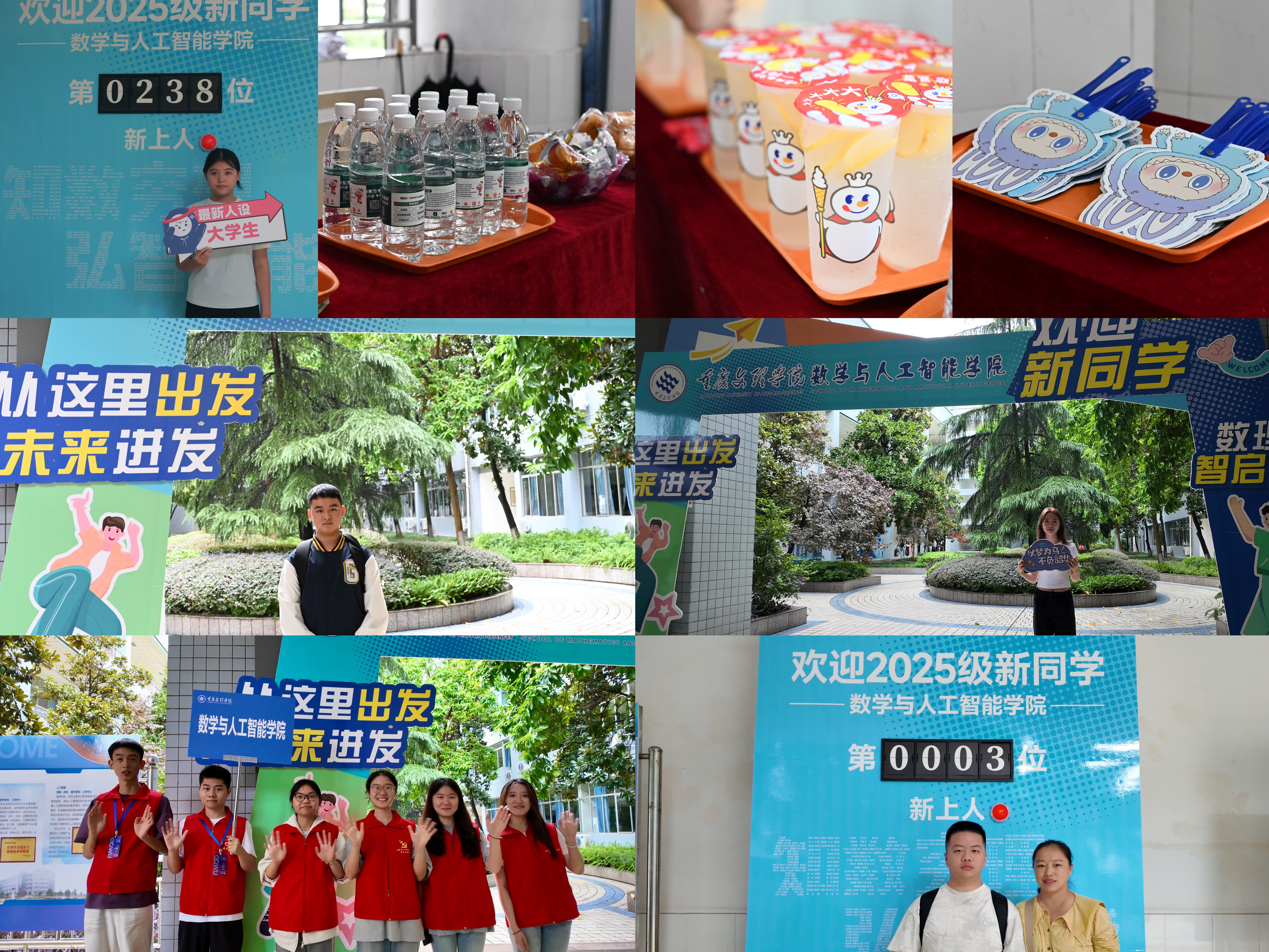 文化浸润、物质保障、人文关怀“三位一体”,打造最具温度的“数智”迎新。实时翻新的“新生报到计数牌”见证第1位到第739位同学依次加入,“数理纵横、智启未来”主题拱门与由全体新生姓名拼成的院训报道标识“知数穷理、弘智赋能”展示在报到场,成为热门打卡点,提醒每位学子“你的名字与学院同频”;学院联合蜜雪冰城设立“能量补给站”,免费发放饮品、小面包、定制小扇子,让“第一份学院礼物”实用又暖心。